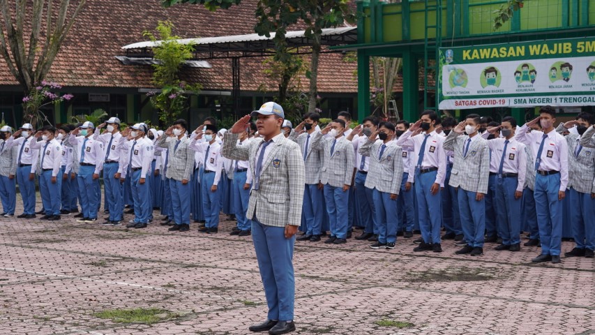 Apel pertama setelah liburan hari Raya Idul Fitri 2022 yang dilanjutkan dengan halal bihalal seluruh warga SMAN 1 Trenggalek.