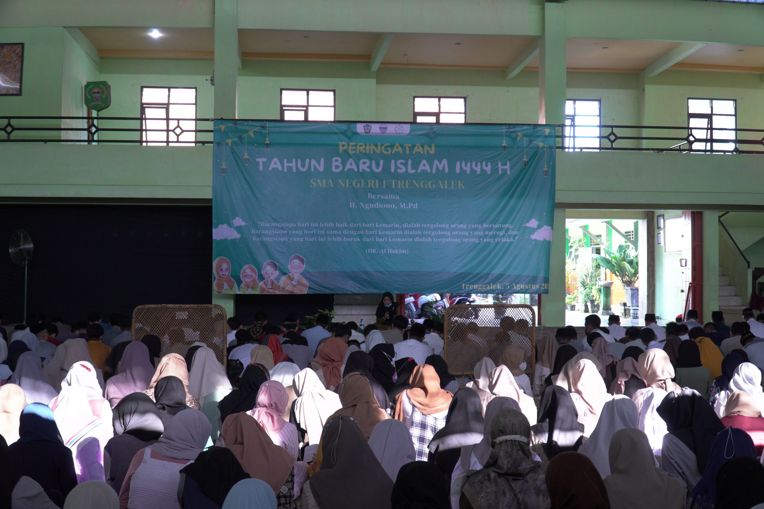 SMA Negeri 1 Trenggalek memperingati tahun baru Islam pada tanggal 5 Agustus kemarin. Bertempat di GOR Graha Wiyata Bhakti, seluruh warga SMANESA HEBAT berkumpul untuk berdoa bersama, melantunkan ayat-ayat suci dan mendengarkan tausiyah dari bapak Ustadz H. Ngudiono, M.Pd. dari Blitar.